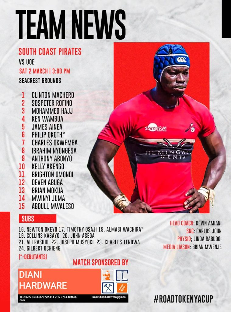 Anthony Abonyo with his first start of the season dislodging the regular Ali Rashid at Scrum-half and will partner the ever green Kelly Akengo.